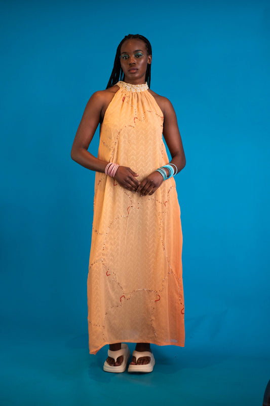 Our first capsule traces the textures of Johannesburg - its grit and gold, its contradictions and beauty. Crafted from curated saris and sewn by women in Cosmo City and Yeoville, each piece embodies becoming. Trenches, bombers, and shifts - seasonless silhouettes hand-finished with mapline embroidery and floral beading.