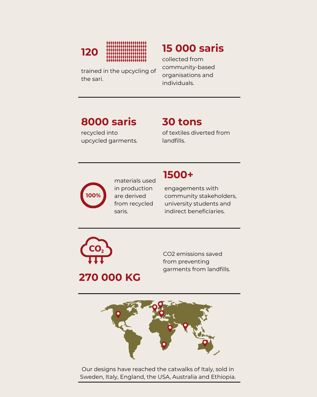 SFCF recycles, upcycles, repurposes, redesigns heritage textile reducing landfill waste.
