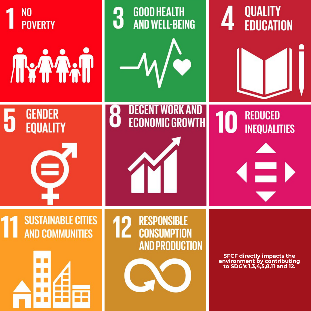 SFCF directly impacts the environment by contributing to SDG’s 1,3,4,5,8,11 and 12.