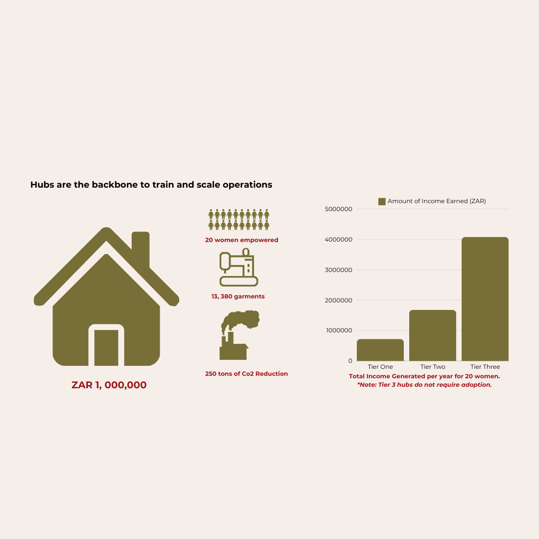 Our mission is to train 25,000 women across South Africa by 2030, using a Pay-It-Forward model where trained women become trainers themselves, establishing cooperative hubs to empower others.