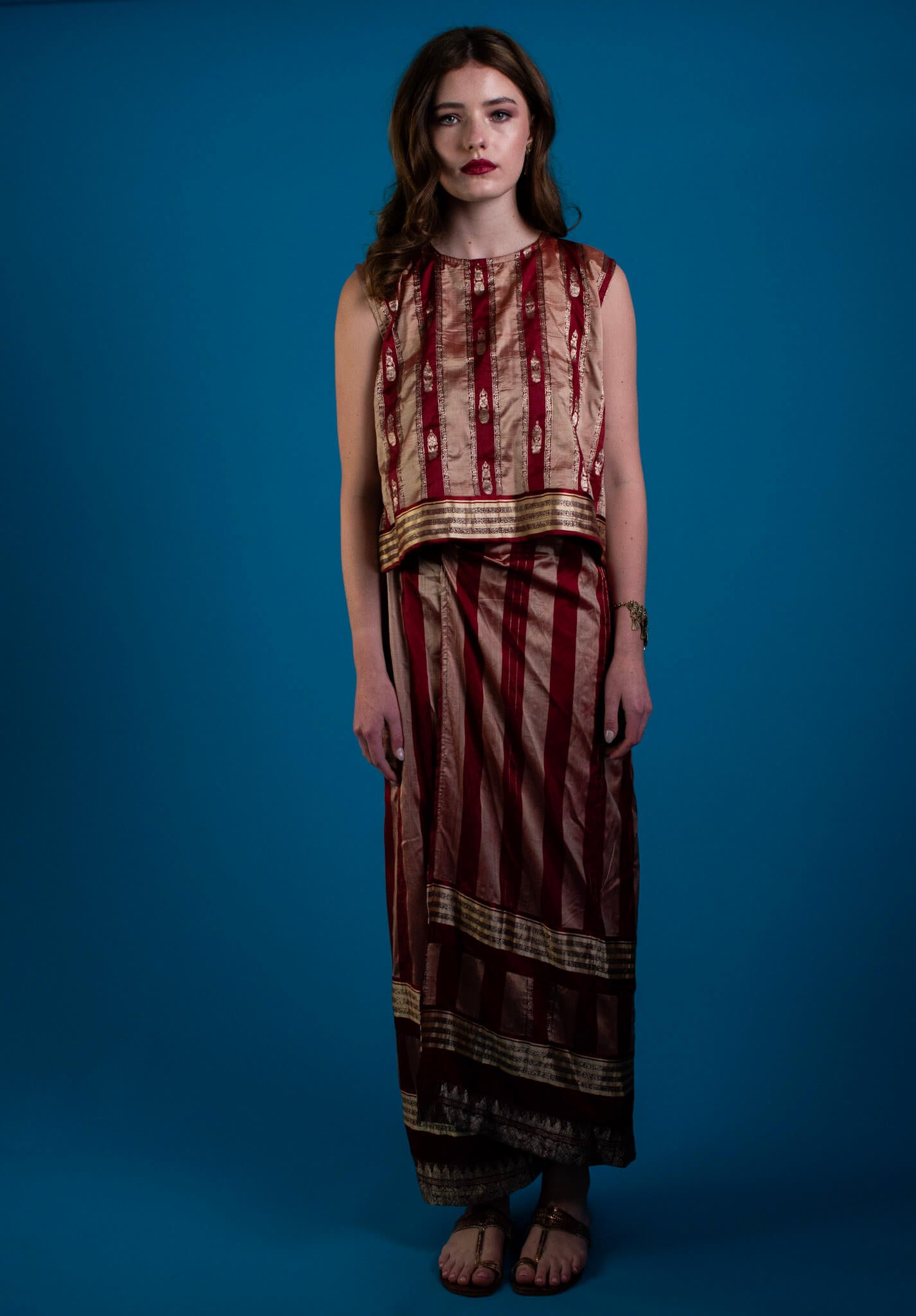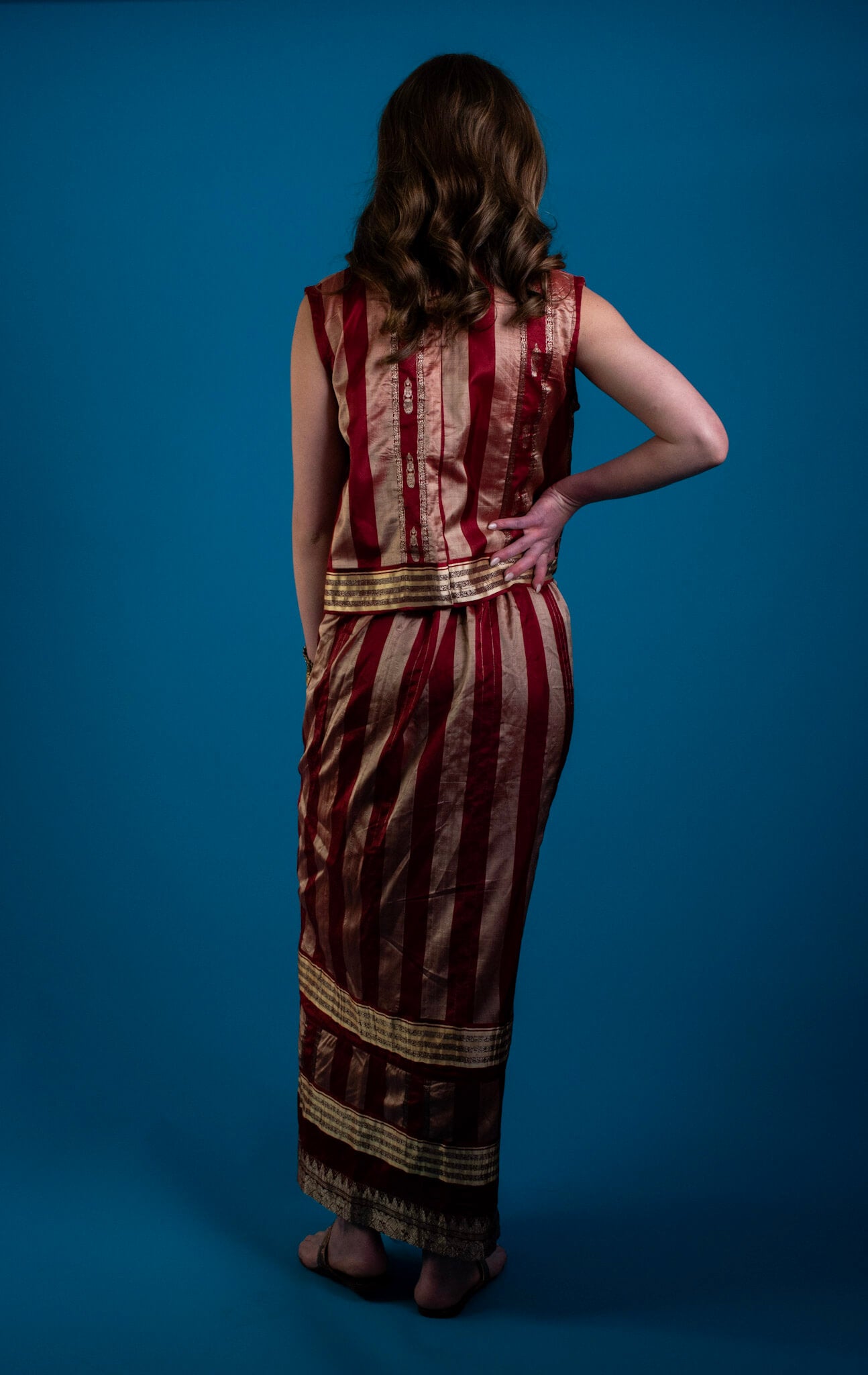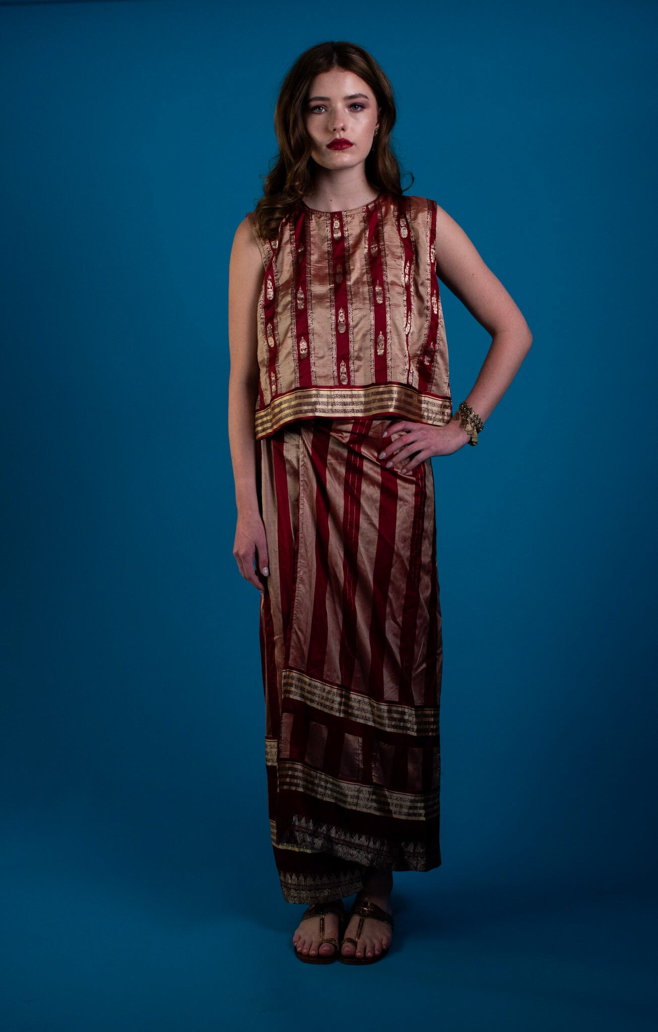 Inspired by Iman Ganijee’s grandfather and the East African khanga, this piece honours the art of wrapping - a gesture of belonging that connects cultures across oceans. Handwoven Madras silk, striped with fine gold detailing, carries a legacy of trade and transformation.