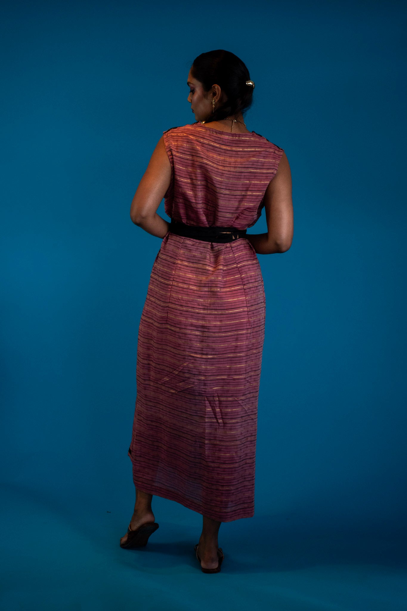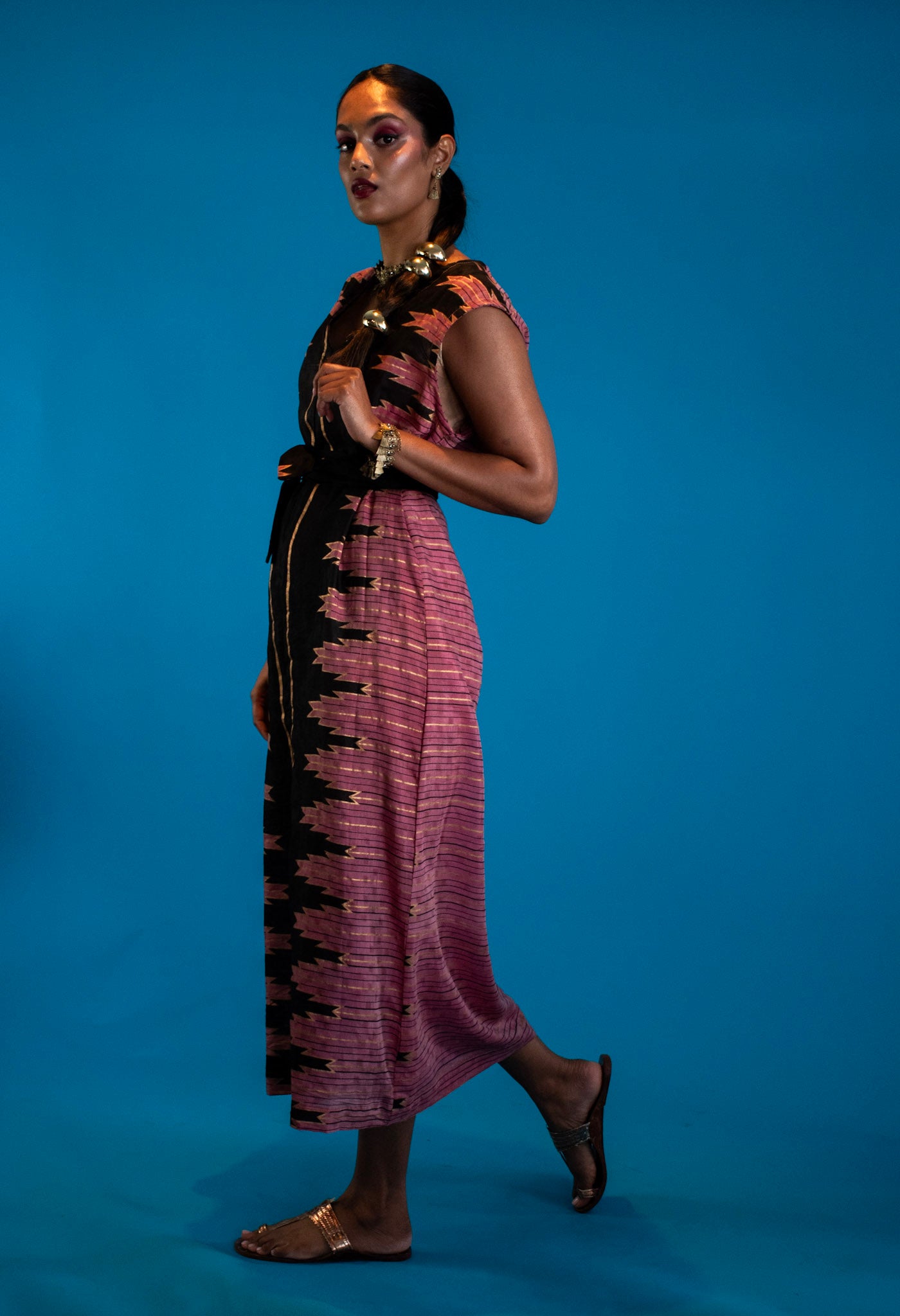 This silk dress showcases that artistry through richer texture and soft, painterly motifs. Cut in a streamlined, tunic-inspired silhouette, refined, flattering, and effortless to wear. Lightweight silk gives gentle movement, while the structured neckline and clean finish create a polished everyday elegance.