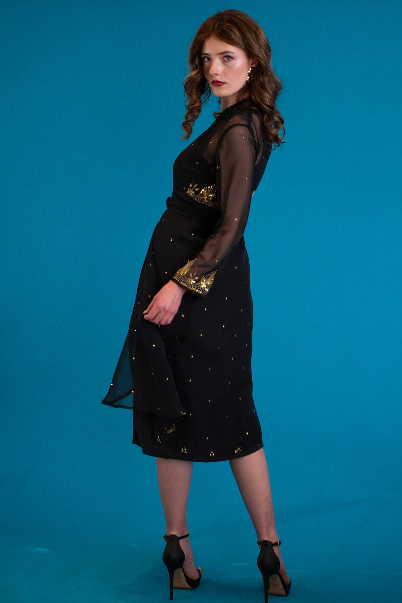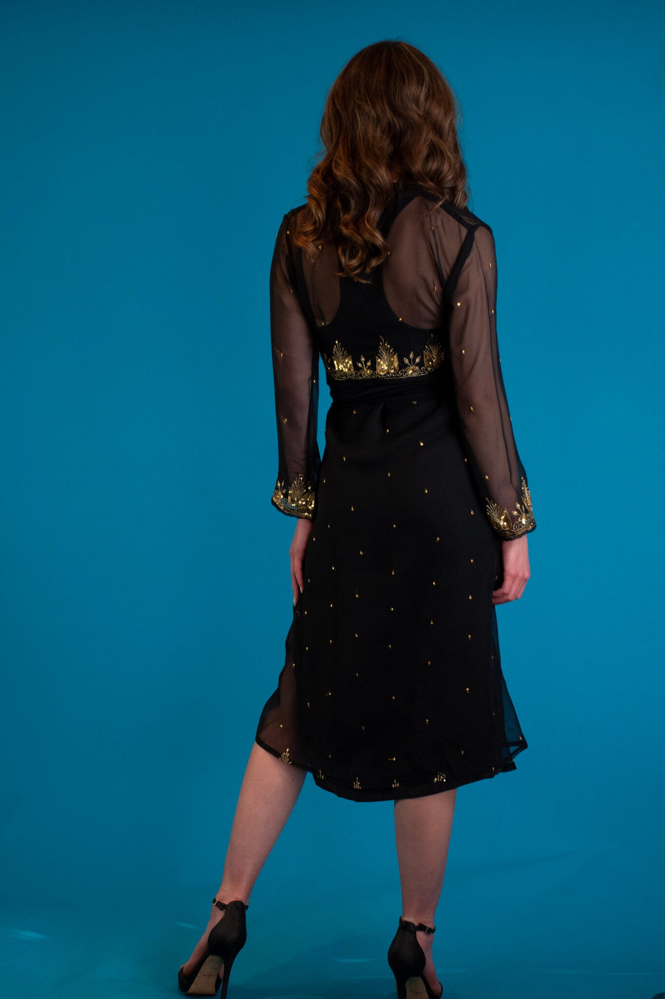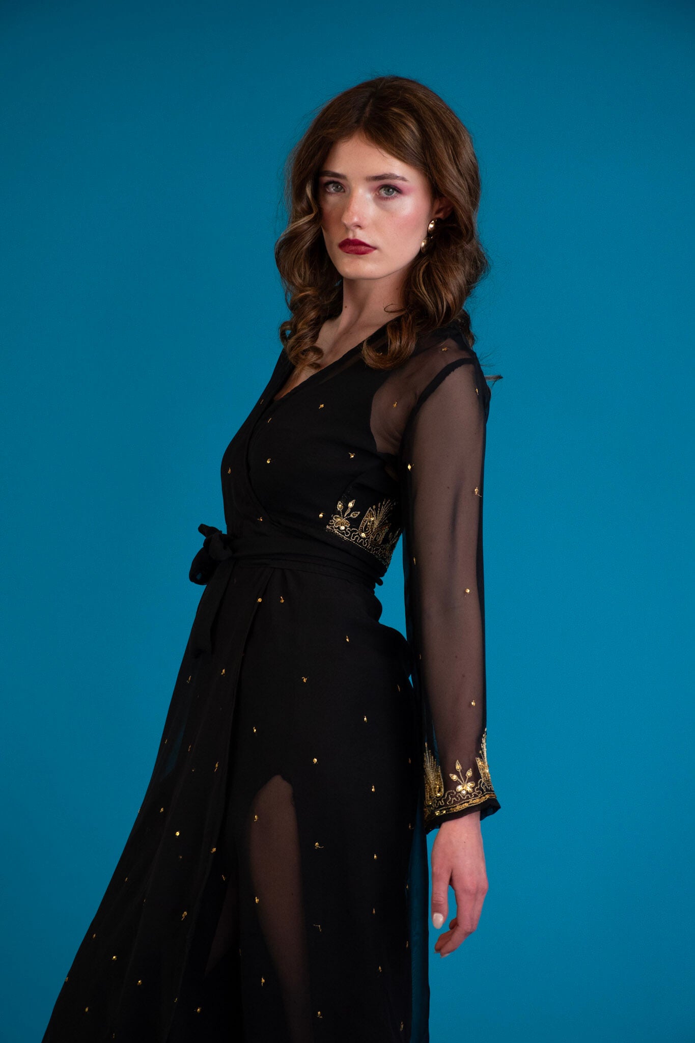 Cut in a wrap silhouette, it cinches the waist beautifully while offering a flattering, adjustable fit. The gentle drape creates a subtle hint of allure - a little leg, a soft neckline - sophisticated without ever trying too hard.