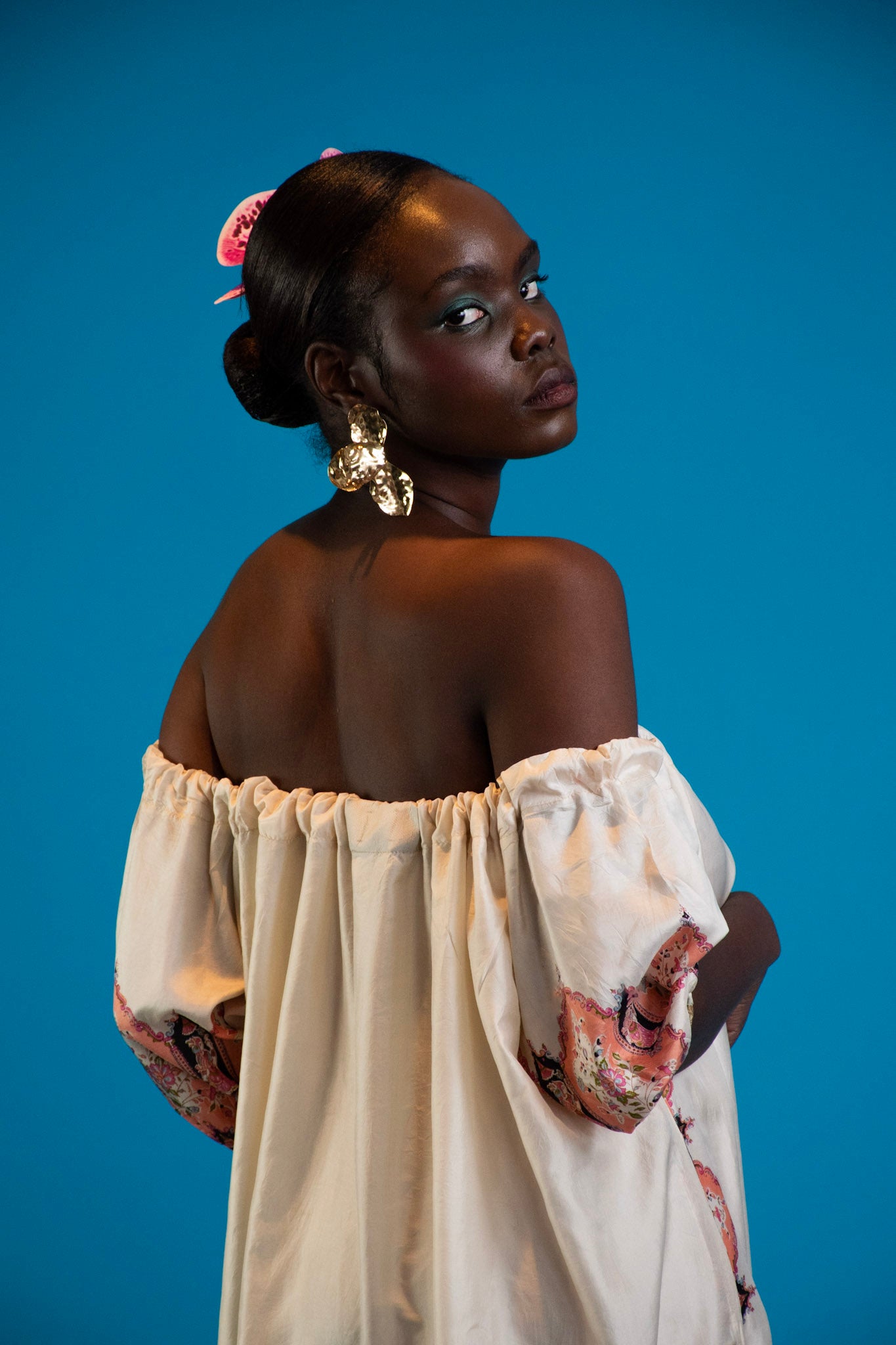 Light as air and rich in heritage, this piece moves between casual sophistication and evening opulence - a celebration of effortless femininity and cultural artistry.