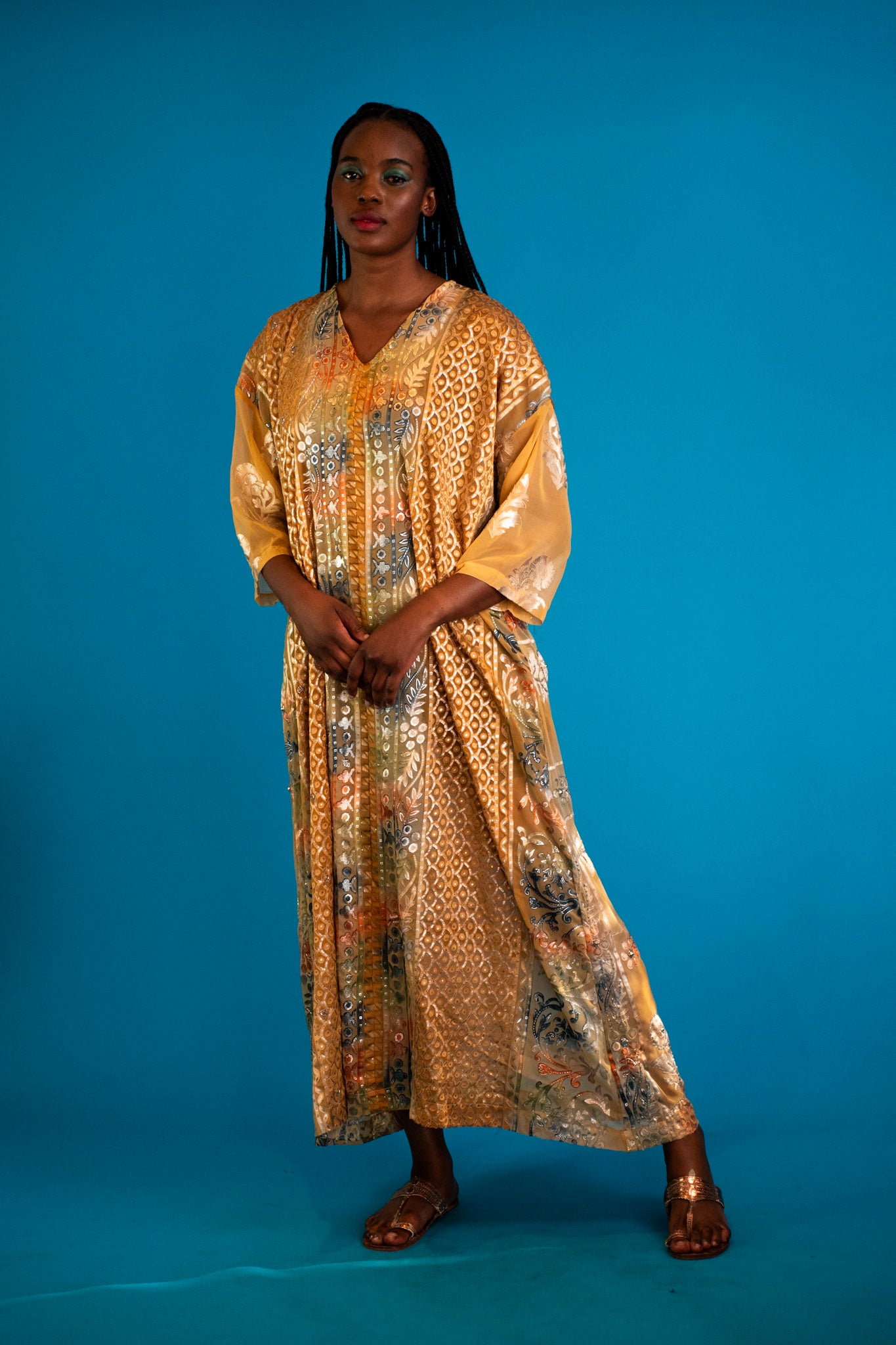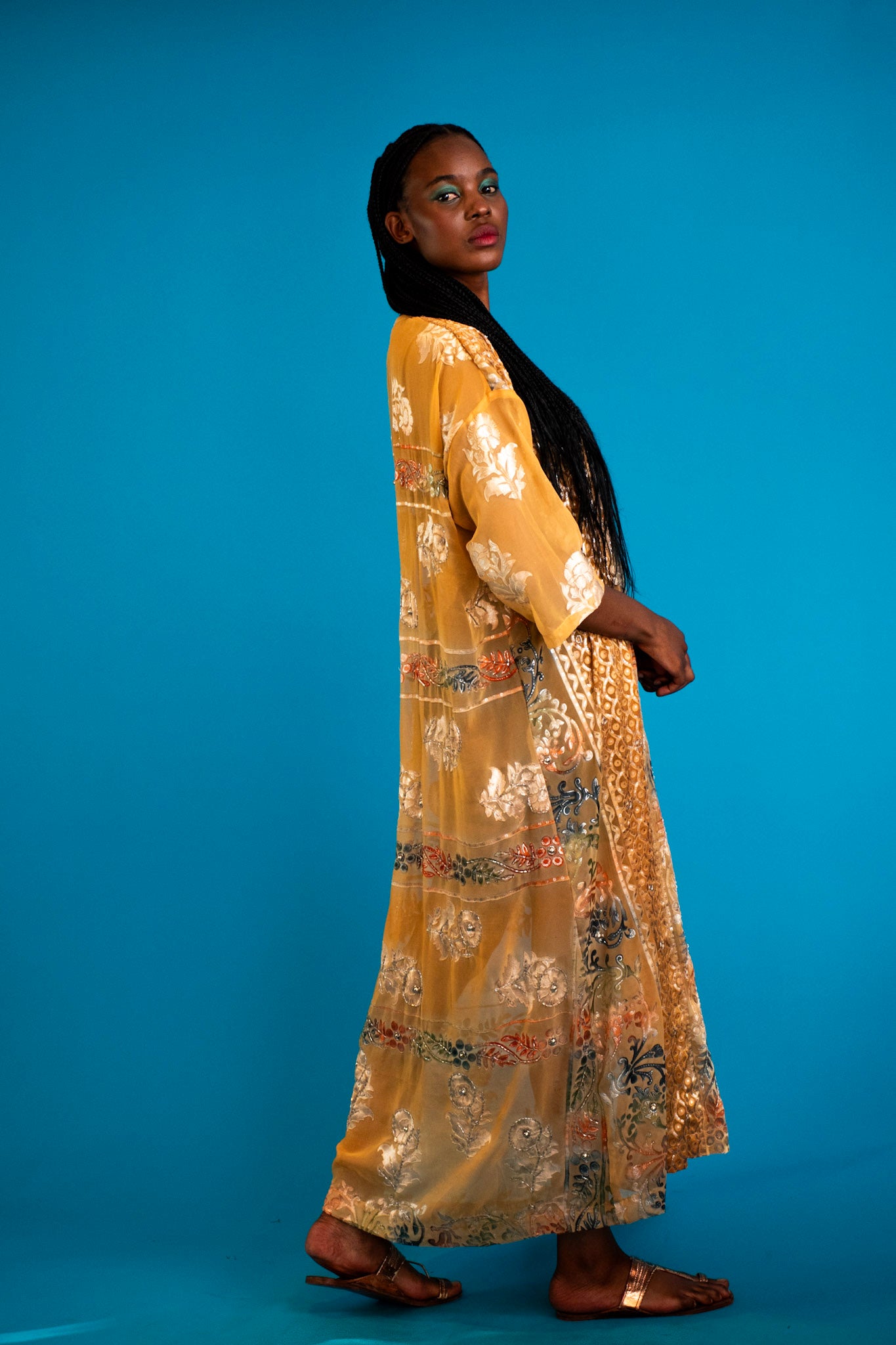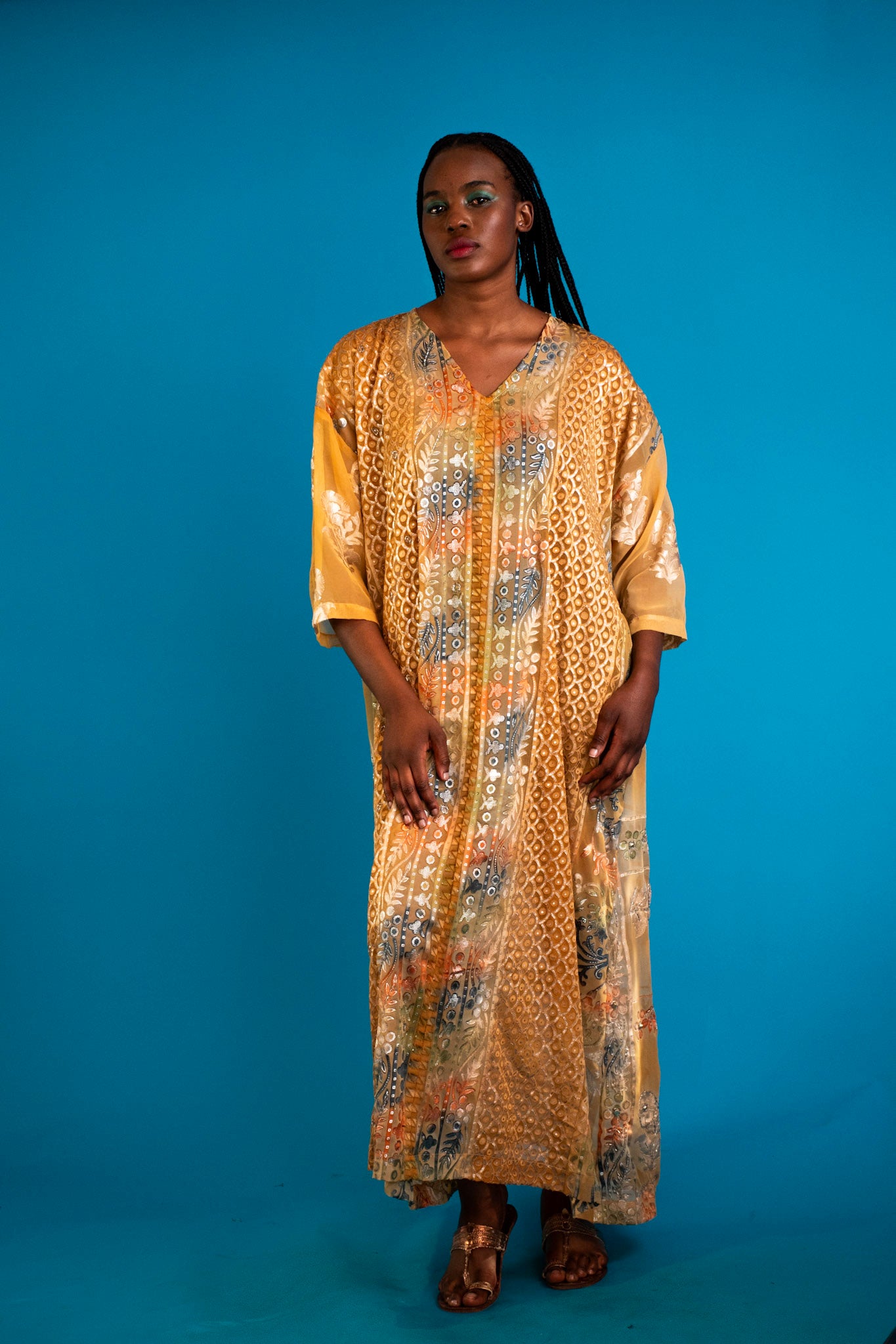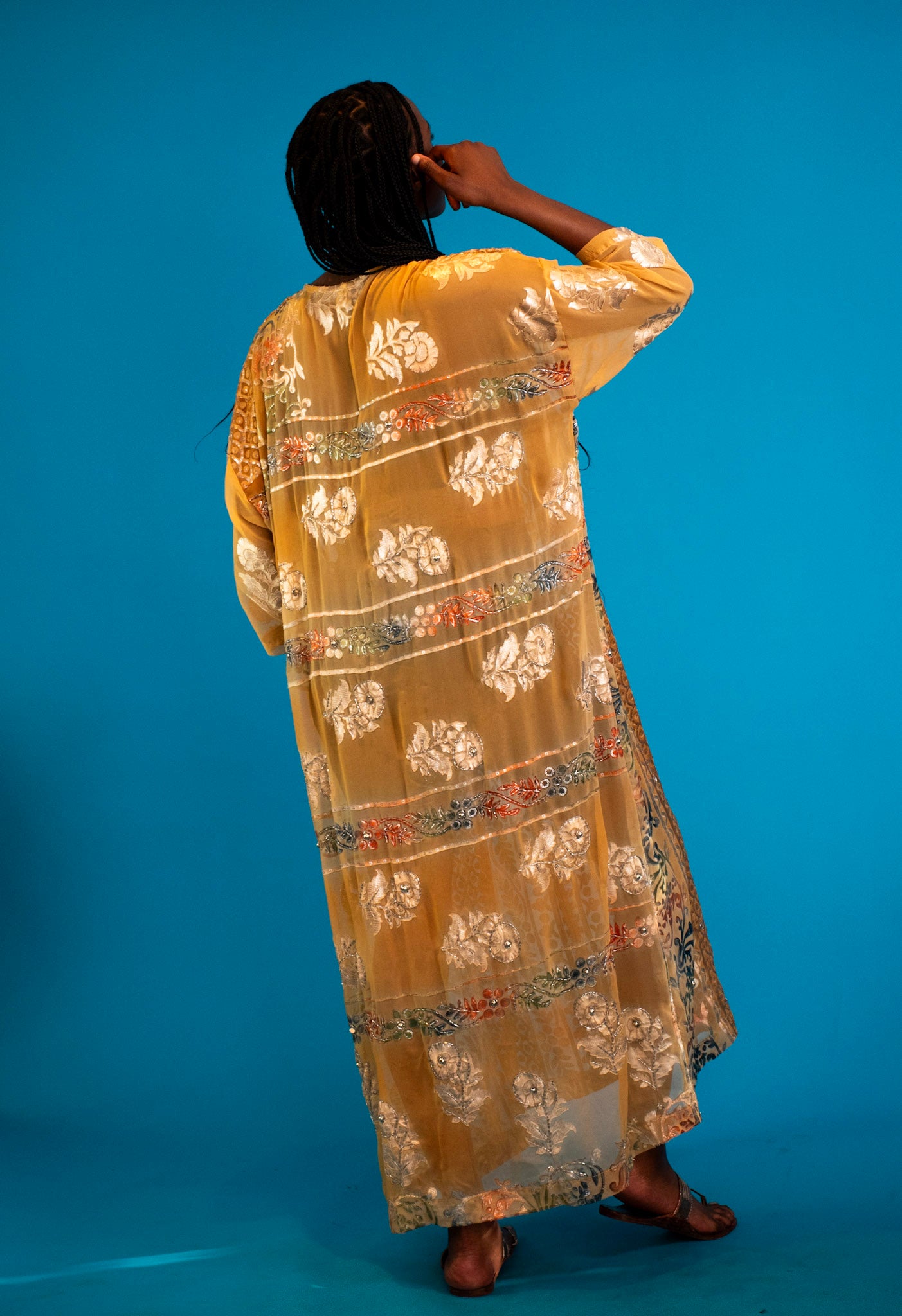Crafted from light, breathable georgette chiffon, this piece features intricate printed patterns and hand-finished sequin accents.