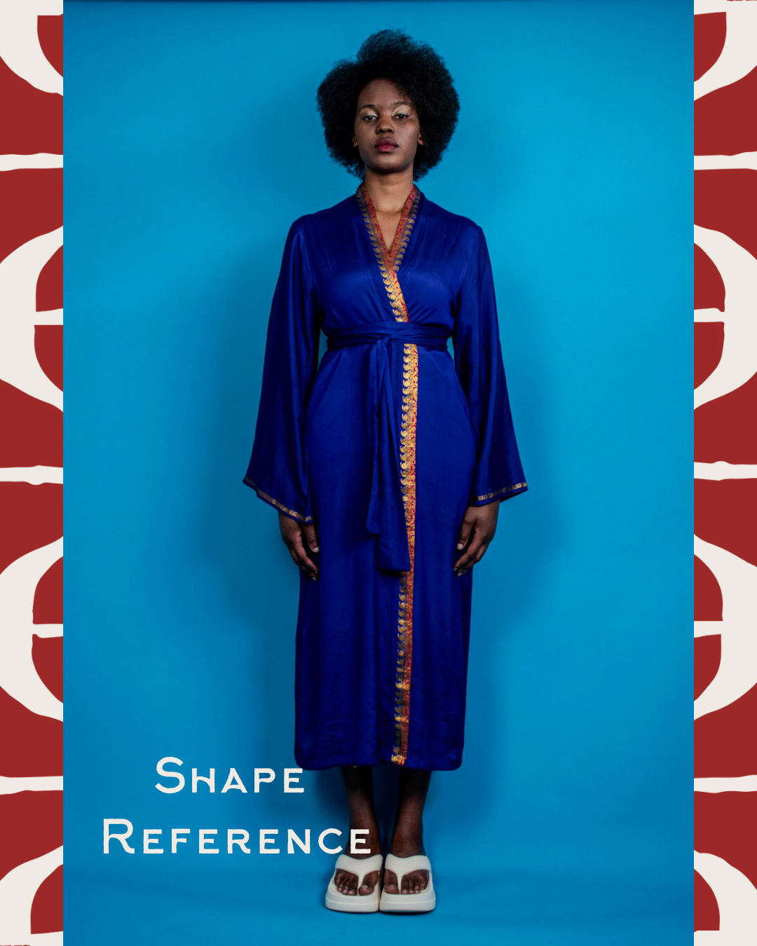 The silhouette is clean and relaxed, with softly structured sleeves that allow for ease and graceful movement. Designed for elevated lounge and resort wear, this piece is finished with a contrasting self-tie belt that brings gentle definition while preserving its effortless flow.