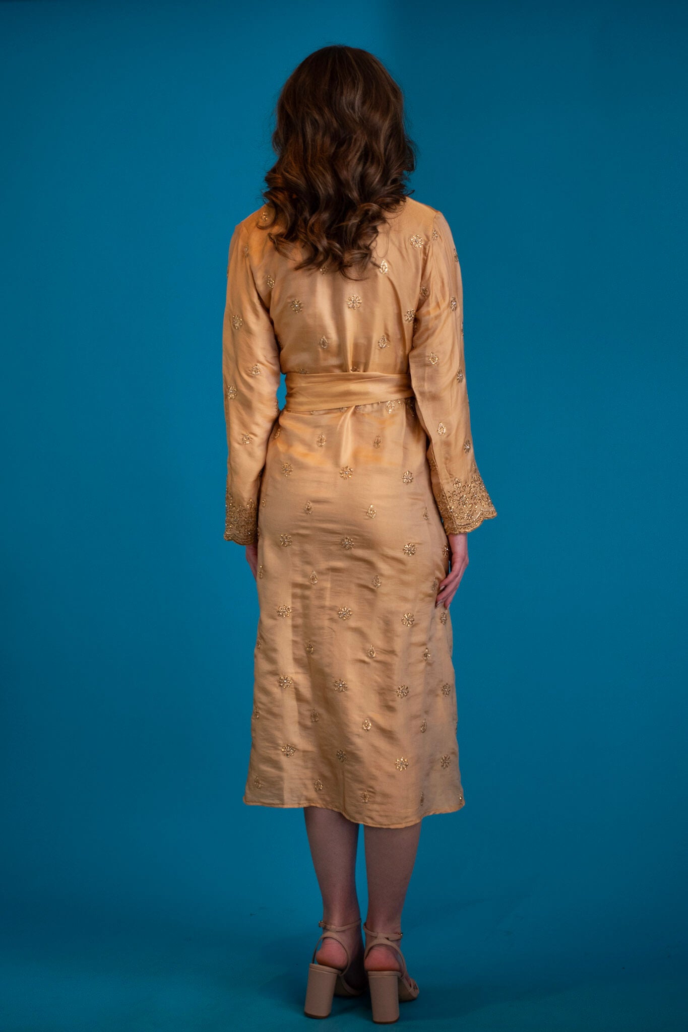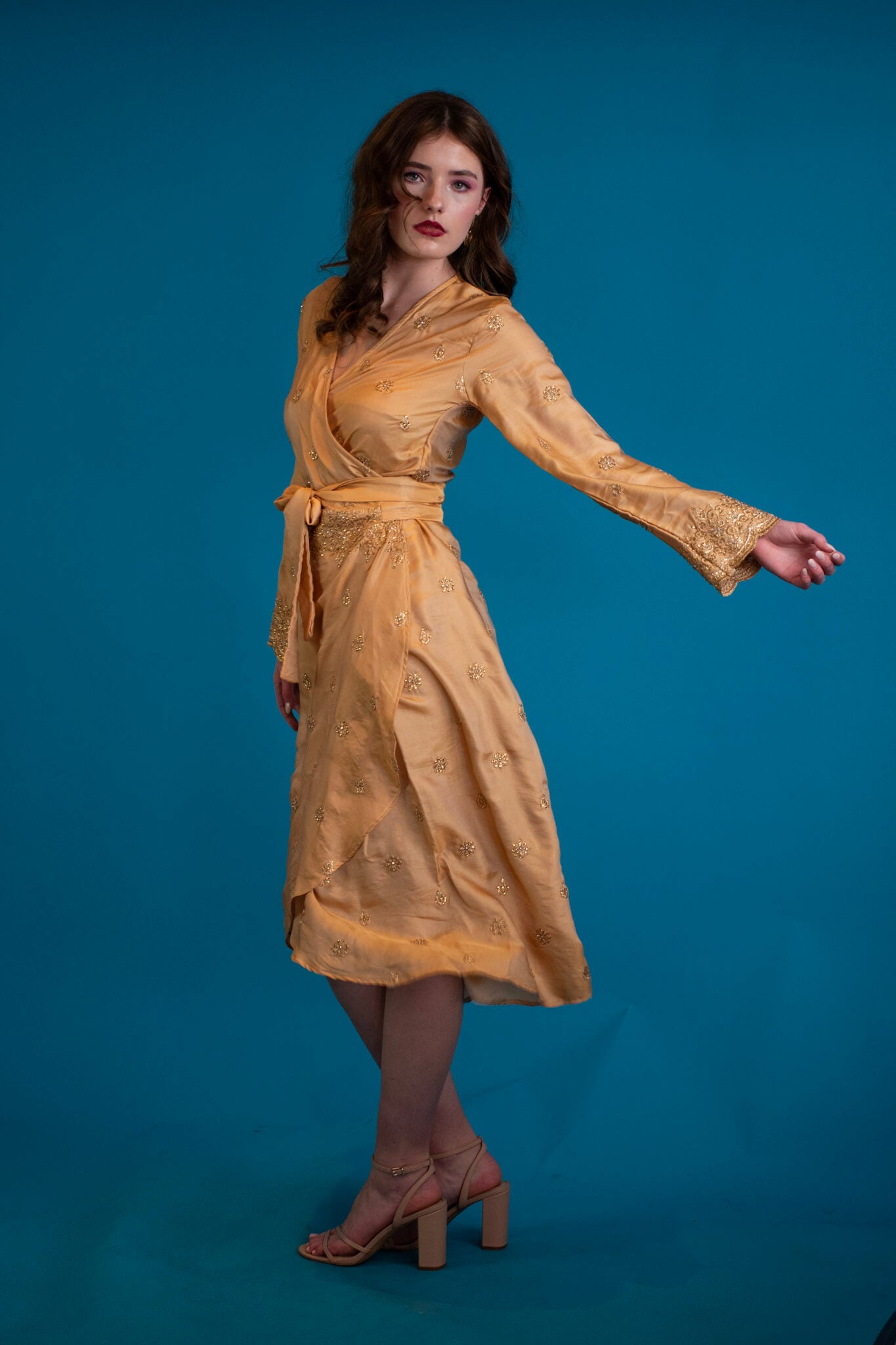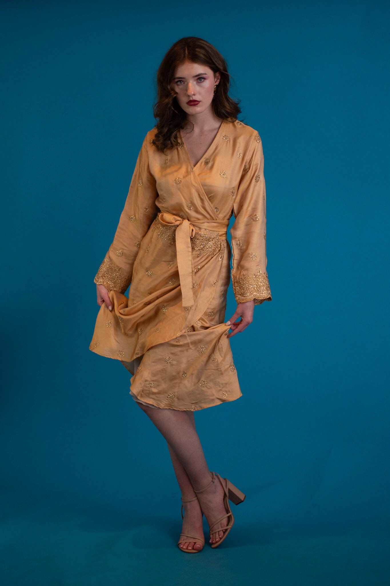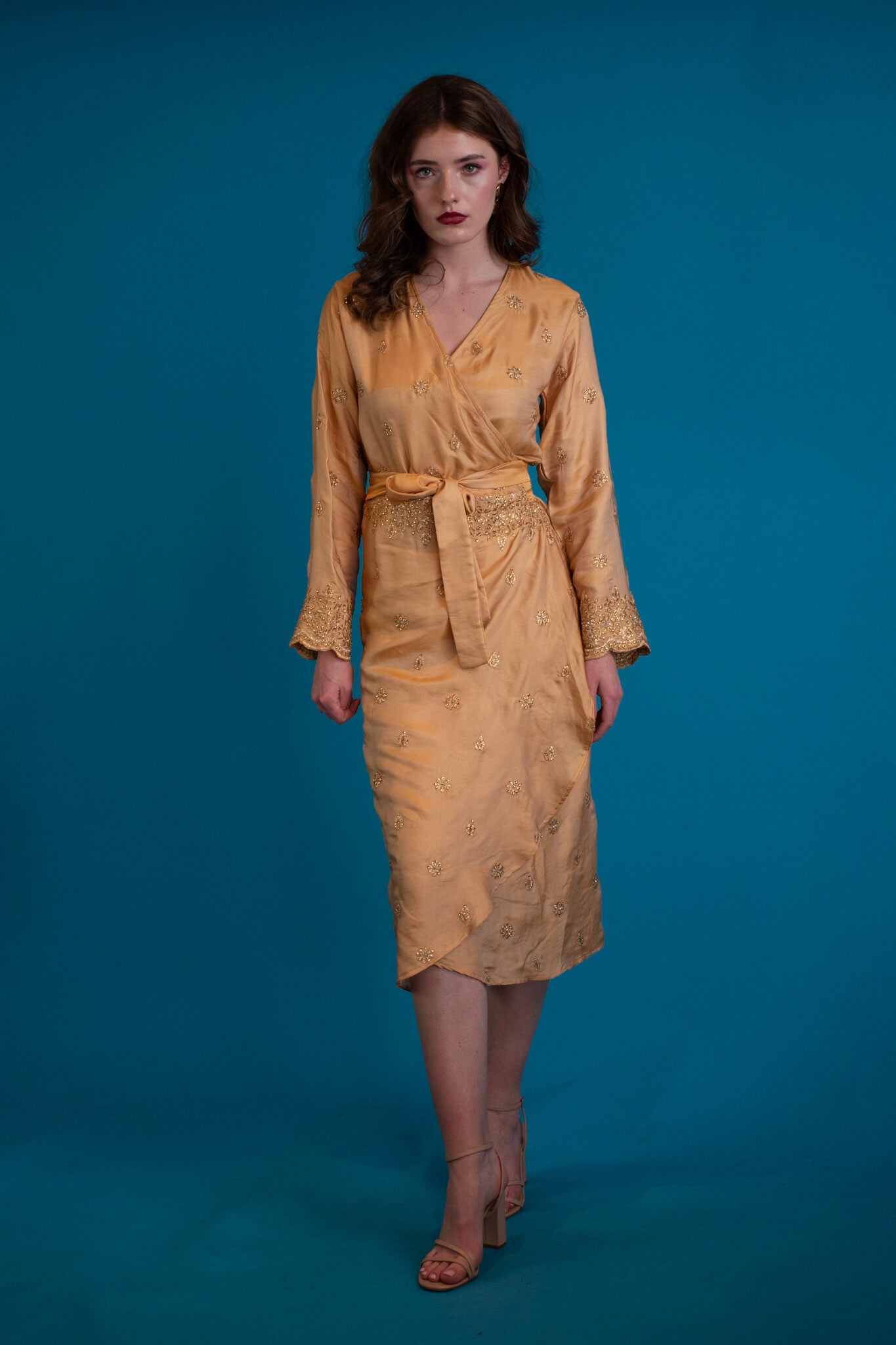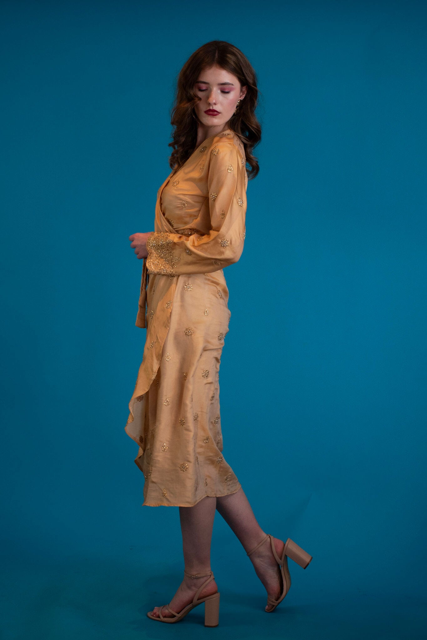 Cut in a wrap silhouette, it cinches the waist beautifully while offering a flattering, adjustable fit. The gentle drape creates a subtle hint of allure - a little leg, a soft neckline - sophisticated without ever trying too hard.